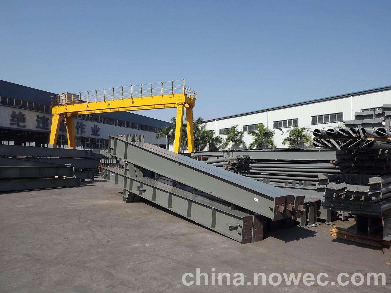 条状单元一般沿长跨方向分割,其宽度约为1~3个网格,其长度为l2或l2/2(l2为短跨跨距)。块状单元一般沿石家庄网架平面纵横向分割成矩形或正方形单元。每个单元的重量以现有起重机能胜任为准。条(块)与条(块)之间可以直接拼装,也可空一网格在高空拼装。由于条(块)状单元是在地面拼装,因而高空作业量较高空散装法大为减少,拼装支架也减少很多,又能充分利用现有起重设备,故较经济。这种安装方法适用于分割后网架的钢度和受力状况改变较小的各类中小型网架,如两向正交正放四角锥、正放抽空四角锥等网架。